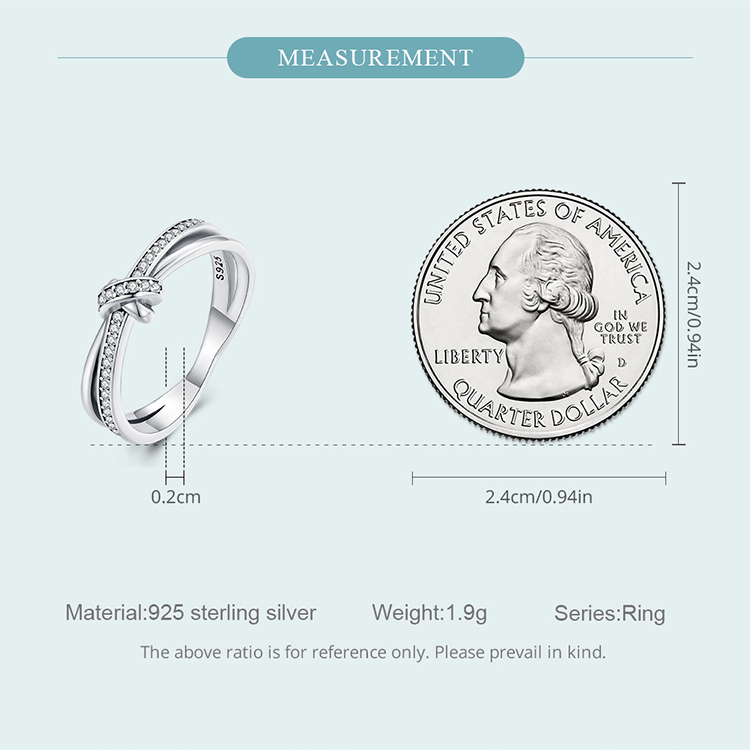 Сребърен пръстен с възел и камъни – Infinity Knot, символ на вечност и елегантност с фин блясък.